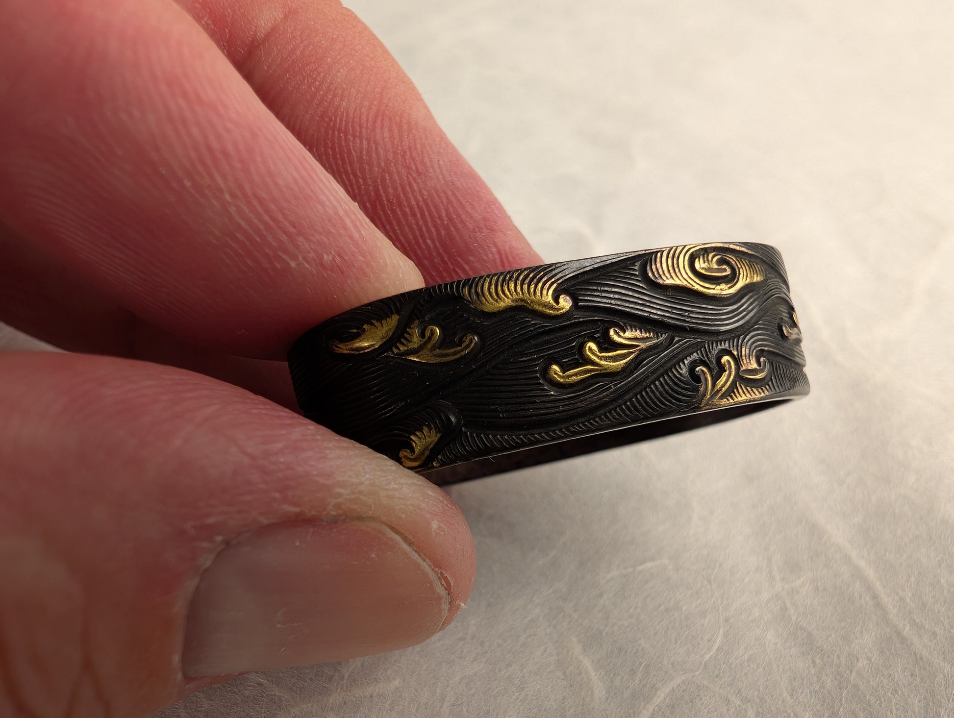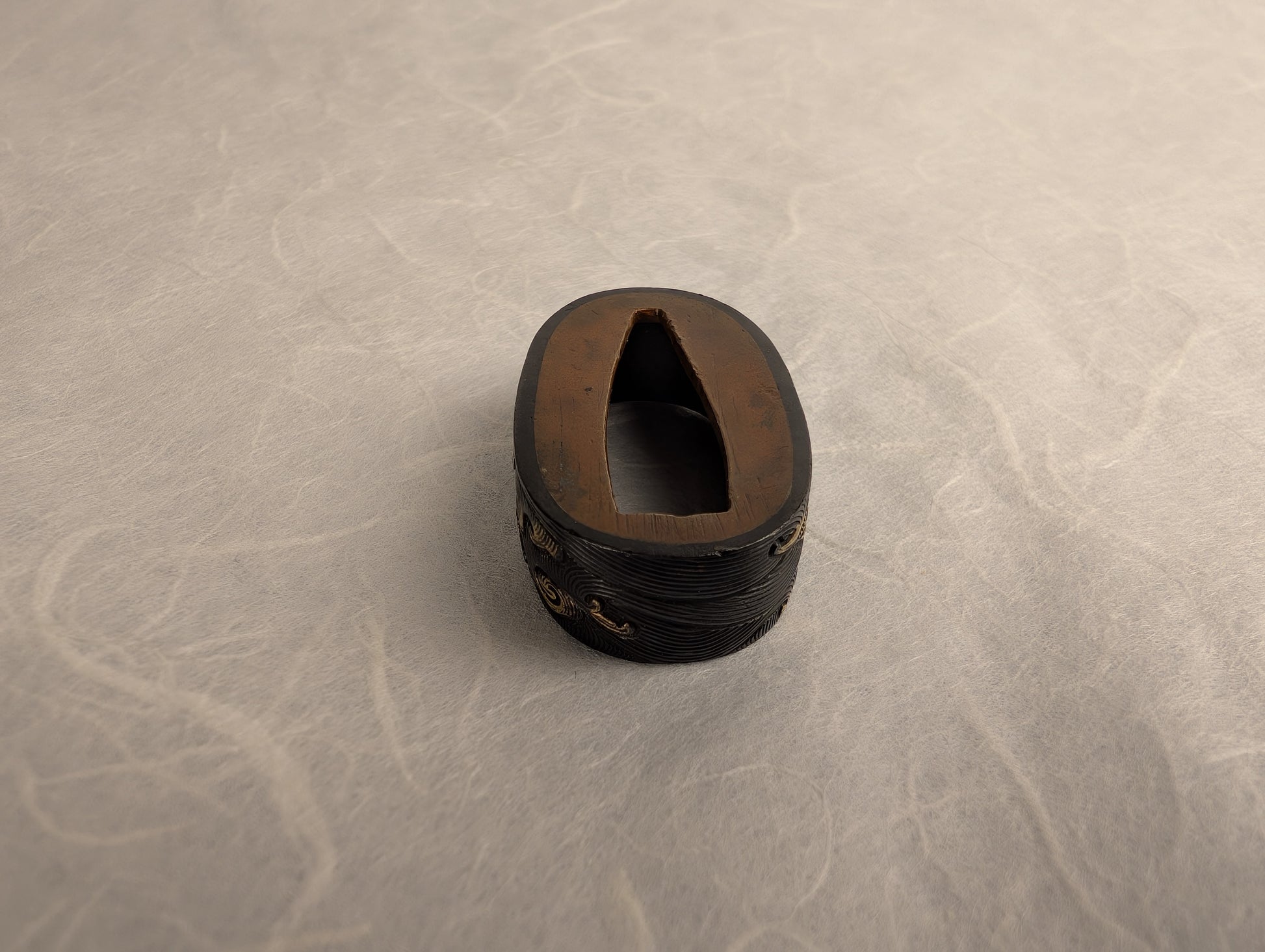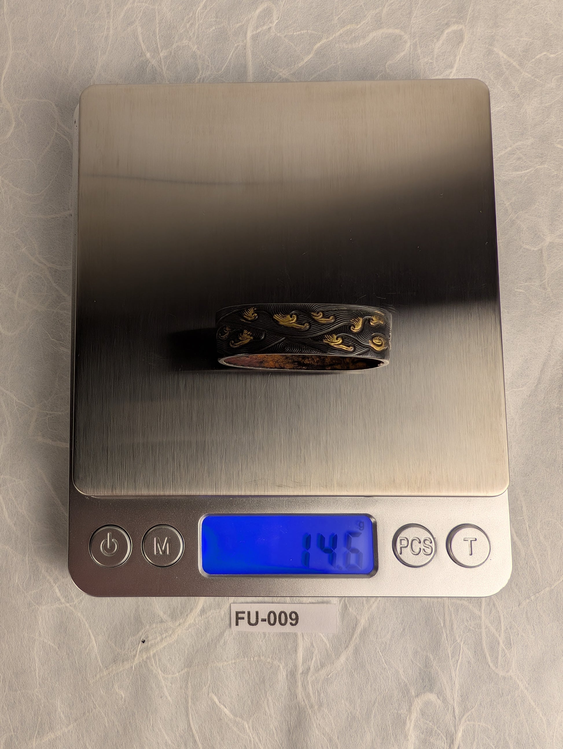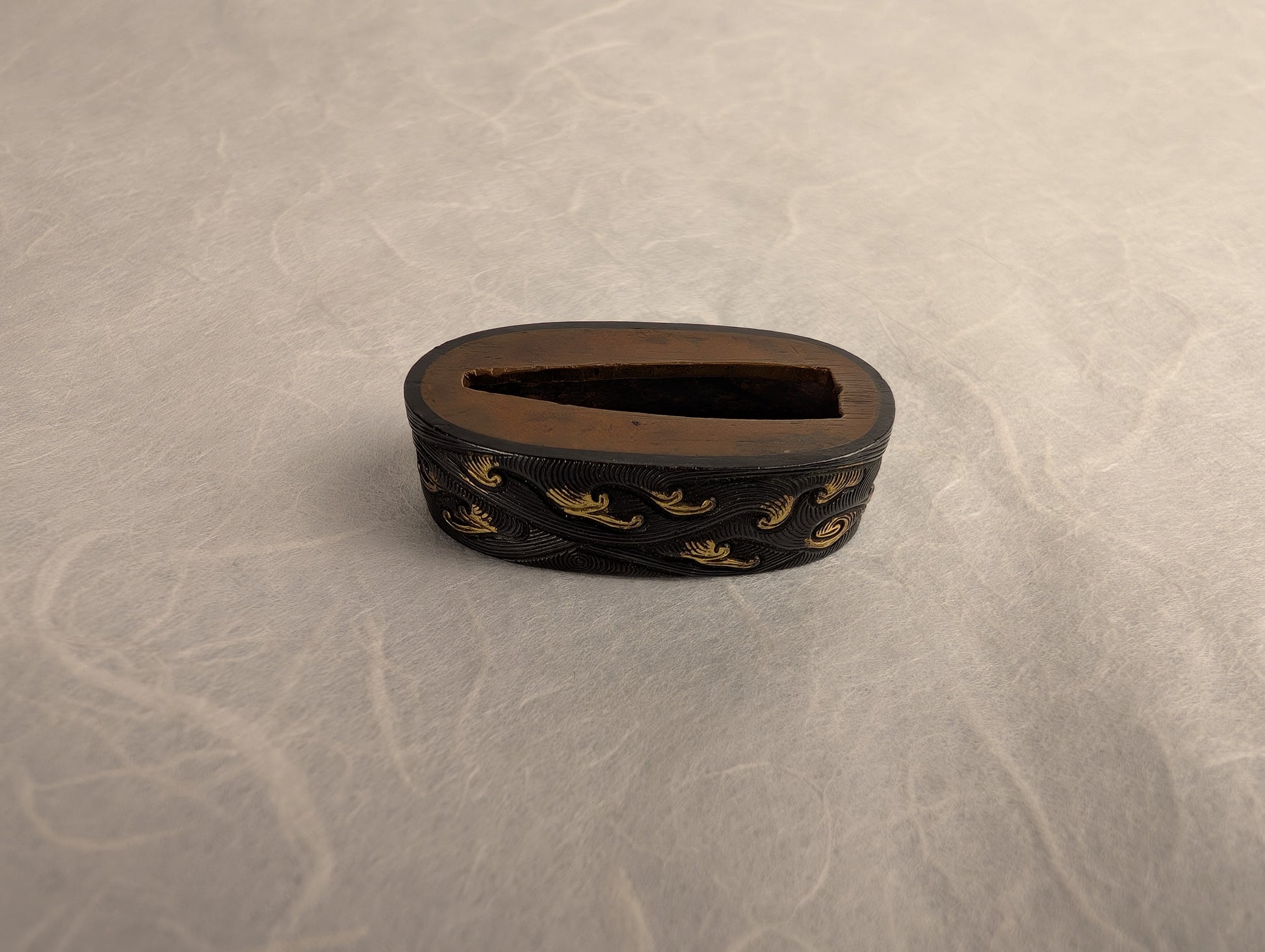 This fuchi features a stunning ground of carved flowing white-capped waves, decorated in a beautiful coat of gold.